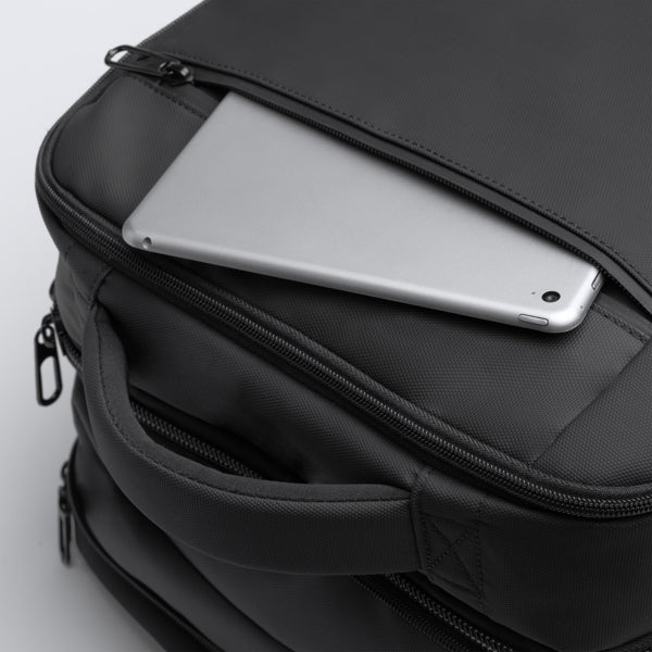 Der PU-Leder-Stretch-Reiserucksack bietet großes Fassungsvermögen und Komfort mit gepolstertem Rücken und Griffen. Mit einer Außentasche auf der Vorderseite mit Reißverschluss. Hauptfach mit gepolstertem Innenfach für 17"-Laptop. Ausgestattet mit Anti-Diebstahl-Taschen am linken Griff und auf der Rückseite sowie einem Trolley-Gurt. Ideal für lange Reisen mit 40 l Fassungsvermögen, kombiniert Stil, Funktionalität und Sicherheit.
